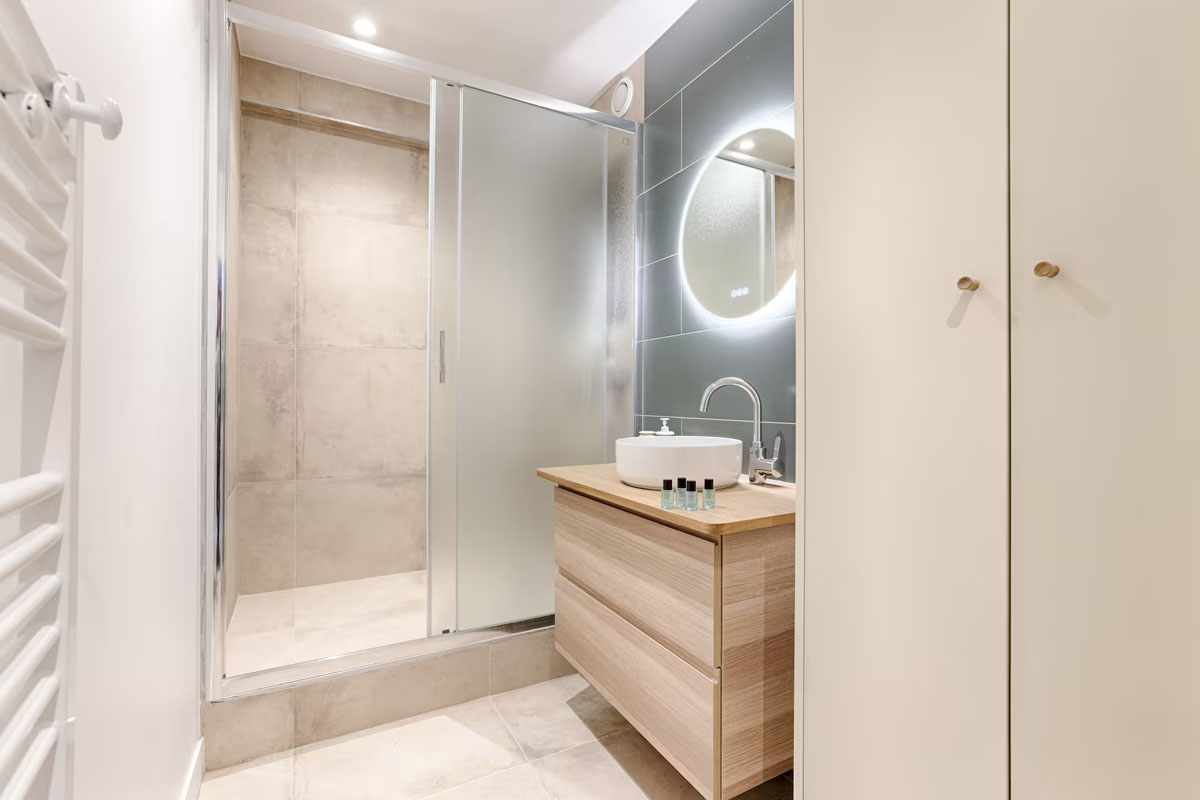 Appartement premium, idéal pour les couples, groupes d’amis, ou pour voyages d’affaires. Au calme sur une cour pavée arborée.