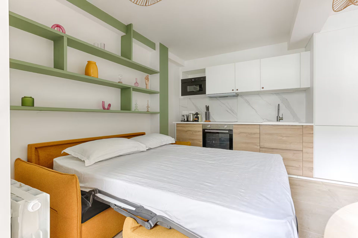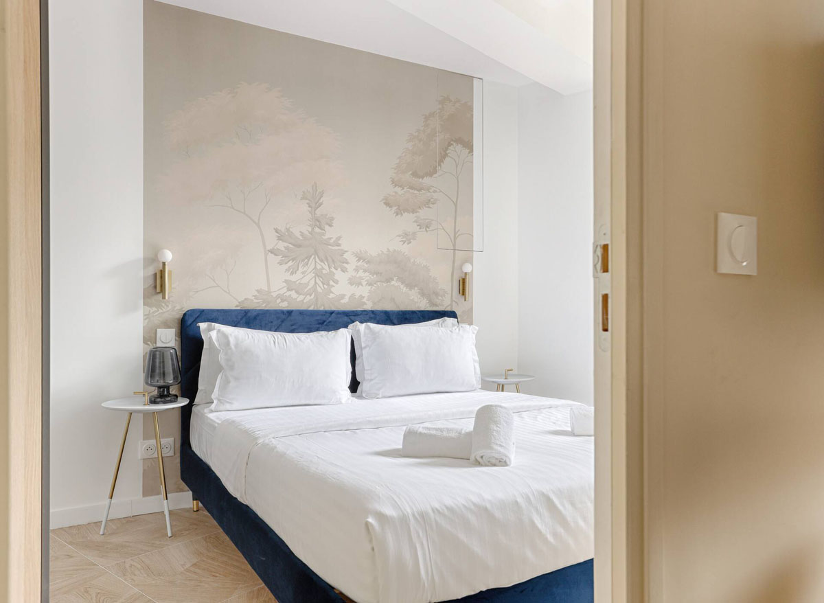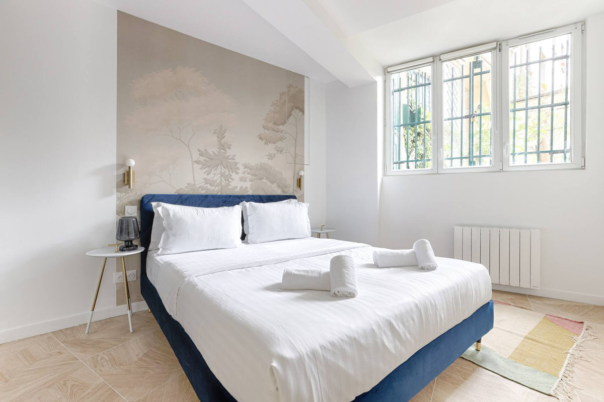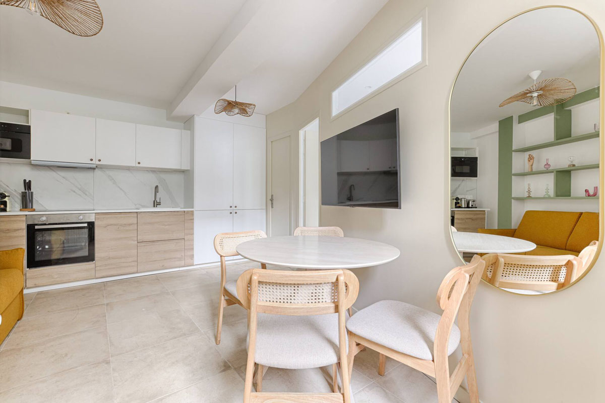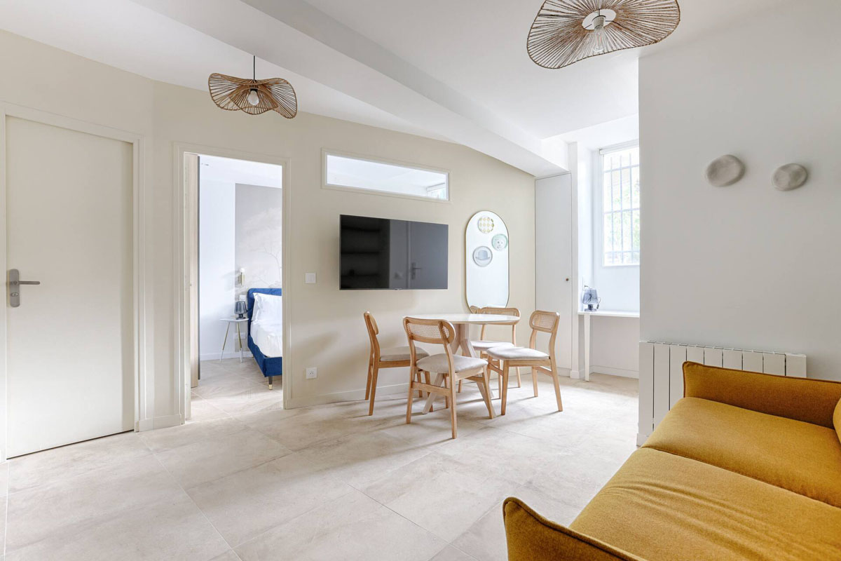 Appartement premium, idéal pour les couples, groupes d’amis, ou pour voyages d’affaires. Au calme sur une cour pavée arborée.