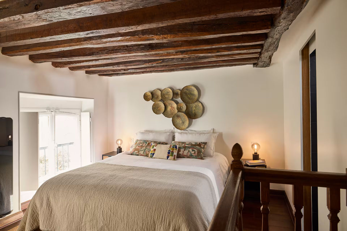 La chambre en mezzanine vous accueille avec une literie de qualité hôtelière et un lit Queen-Size (160x200cm) pour des nuits reposantes. La salle de bain attenante, moderne et fonctionnelle, dispose d’une belle douche et de toilettes.
