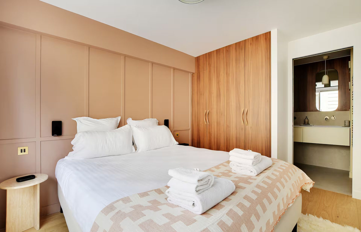 Les trois chambres bénéficient toutes d’une literie de qualité hôtelière, de rangements et de télévisions connectées.