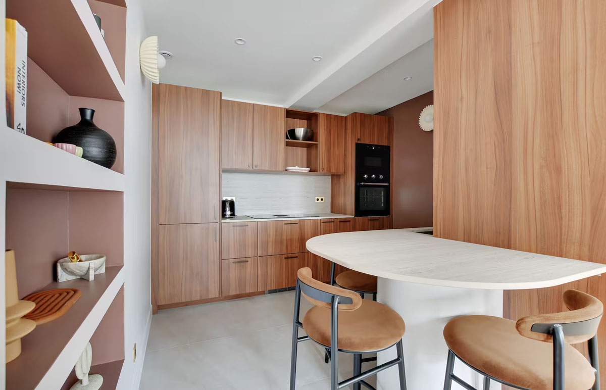 L’espace repas vous invite à partager un beau moment de convivialité autour d’une magnifique table avec chaises et banquette.