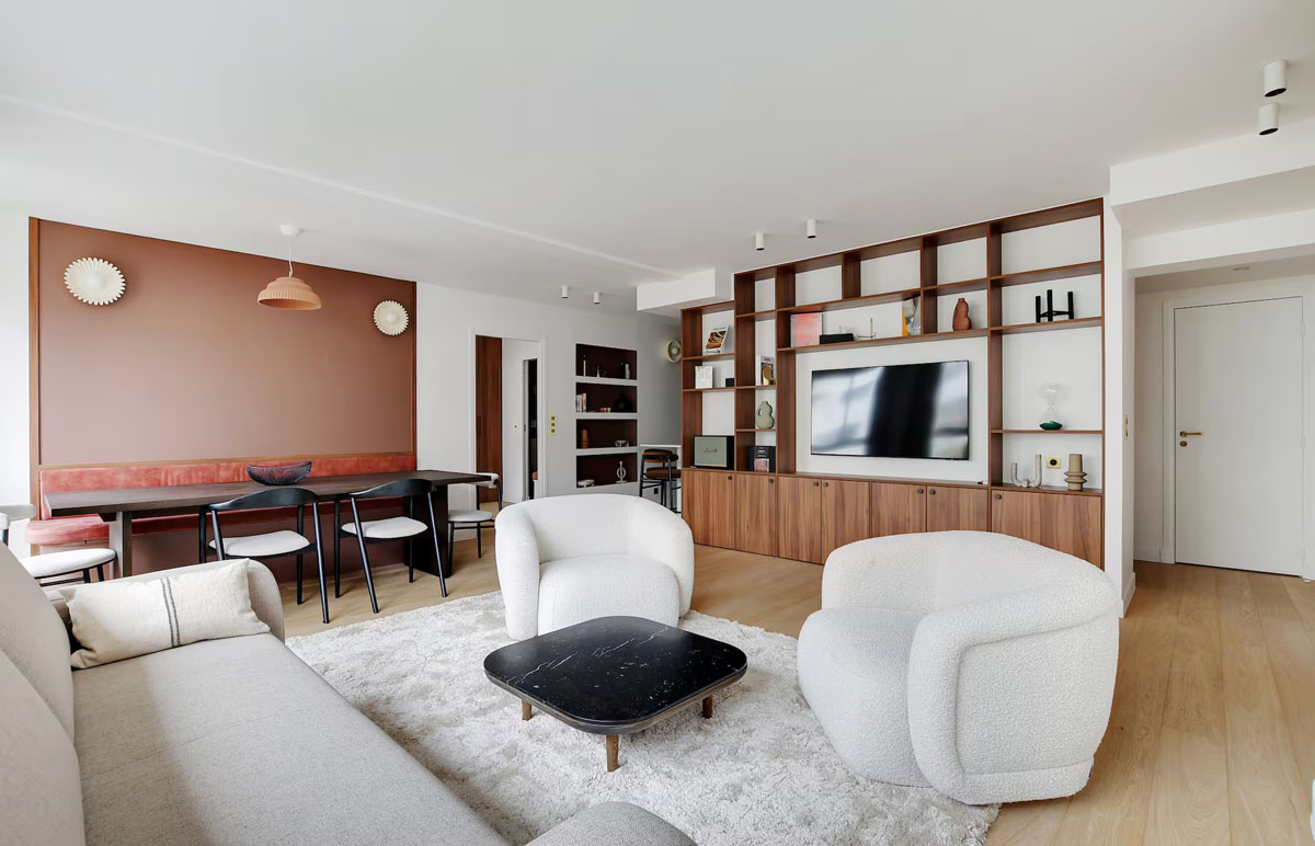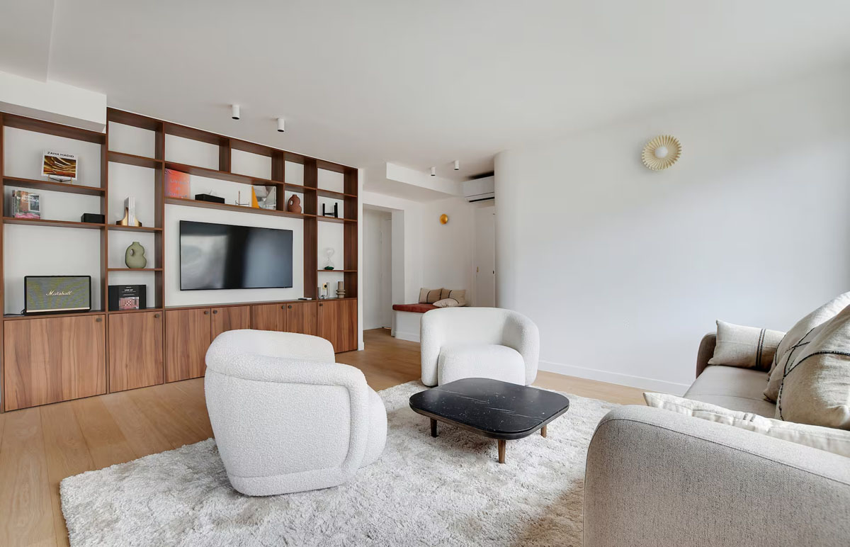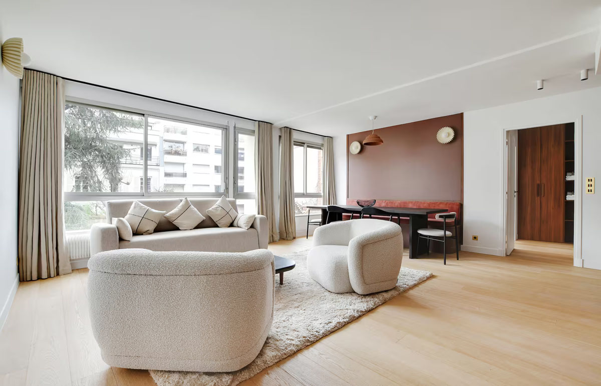 Cet appartement raffiné de 110 m² est situé au troisième étage, avec ascenseur, d’un immeuble moderne, dans l’un des quartiers les plus élégants de Paris, le Trocadéro.